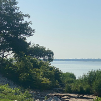 It’s a little tricky to get my kayak down the rocks to launch on the beach, but I let gravity do it’s job. Even at 6:10 am it was blistering hot and humid and hard to confirm that tide was coming up river, although it was.