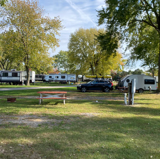 I was smart enough not to plan a long drive today so I only had to get to Elkhart, IN, world capital of recreational vehicles. That never meant much to me until now. I did a practice run at a rest area to get gas and so I could just roll in the morning. Due to the time change which I forgot about, I didn’t get to my site until 7:30. :(. But again the practice at home was helpful and I set up quickly in the fading light. I had some left over pizza and called it a night.