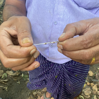 His garden reminded me of one my mom and I informally toured in Scotland where a man with caterpillar eyebrows knew exactly where everything was even though he no longer pristinely maintained his garden. Only Abraham had hairy ears and knew where everything was on his farm. 23 varieties of bananas, cardamon (this is THE place for Cardamon growing), coffee, pineapple, jack fruit, avocados, bladk pepper, string pepper, mace, ginger, two kinds of giant lemons, hot peppers, and more. He showed us natural rubber and hives of bees they are allowed to harvest once a year from the preserve. One hive was swarming to relocate.