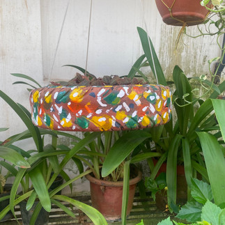 I did my Greek study by the pool and did some journaling before I set out for Kashi art kage. found it easily and I was early so I got a coffee while I waited. Parvity found me and ordered a coconut drink. They harvest coconuts here before they get all badly in the outside, slice open the top and drink the milk out with a straw. I'm sure it's a good way to maintain electrolytes in this climate. It is more humid here so even Parvity is bothered by it!